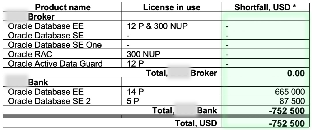 An international bank and financial broker based in the UK requested a database usage assessment after receiving notification of an Oracle license audit.