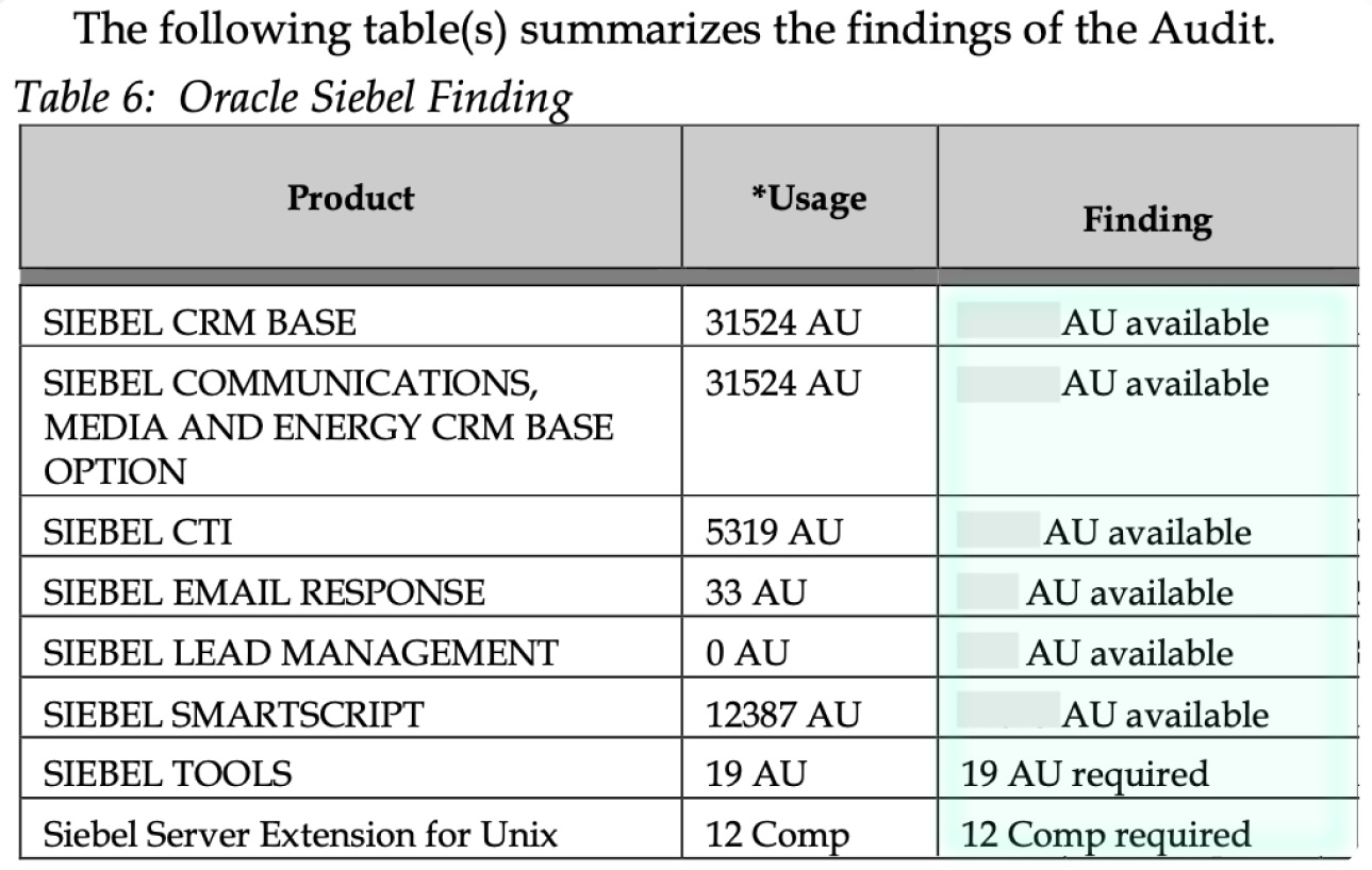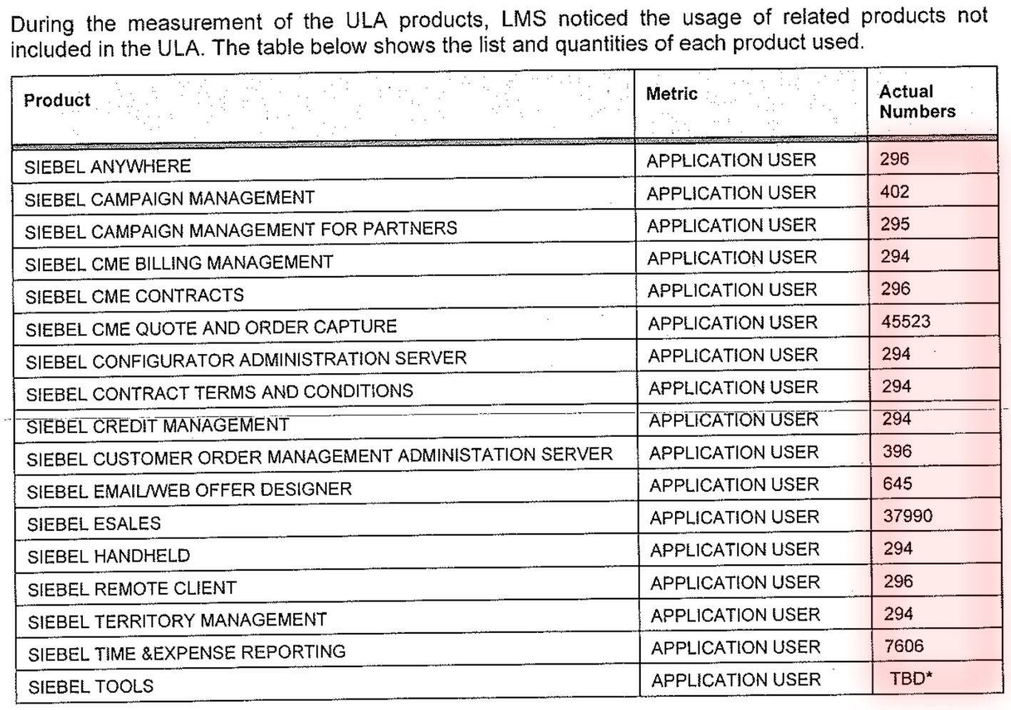 The customer was unaware of this exposure, as Siebel licensing heavily depends on interpretation of measurement results and mapping between modules and system views.